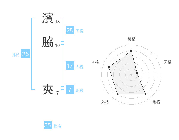 濱脇 夾さんを姓名の画数から五運を鑑定