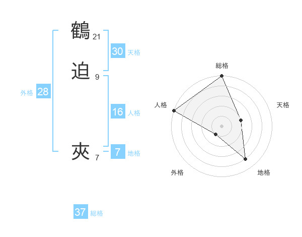 鶴迫 夾さんの総格は37画の5点!