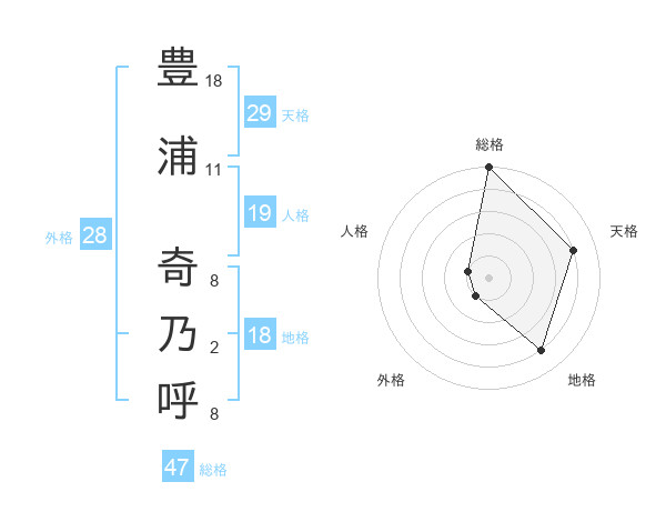 豊浦 奇乃呼さんの総格は47画の5点!