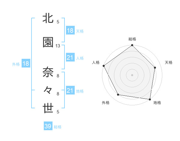 北園 奈々世さんを姓名の画数から五運を鑑定
