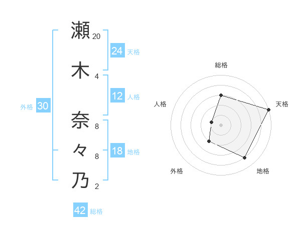 瀬木 奈々乃さんを姓名の画数から五運を鑑定