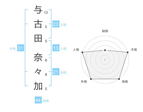 与古田 奈々加さんを姓名の画数から五運を鑑定