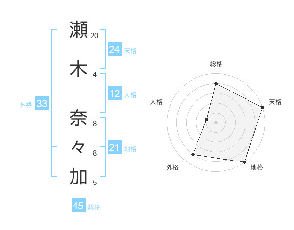 瀬木 奈々加さんを姓名の画数から五運を鑑定