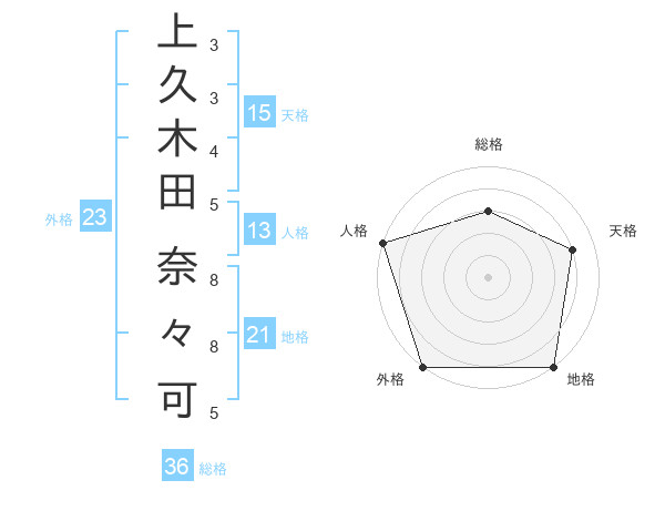 上久木田 奈々可さんを姓名の画数から五運を鑑定