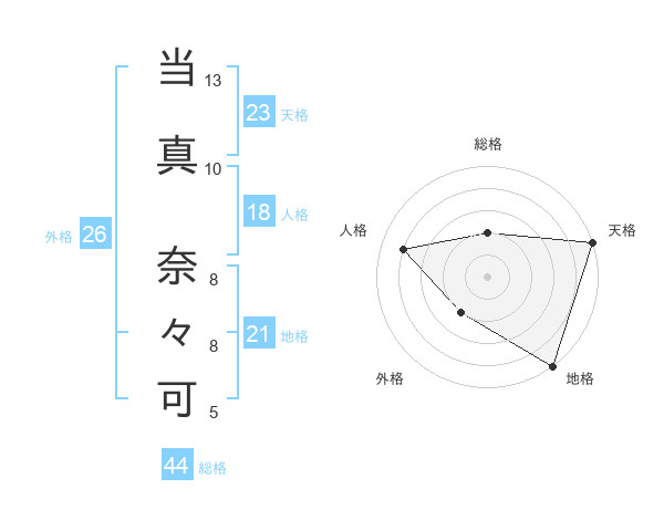 当真 奈々可さんを姓名の画数から五運を鑑定