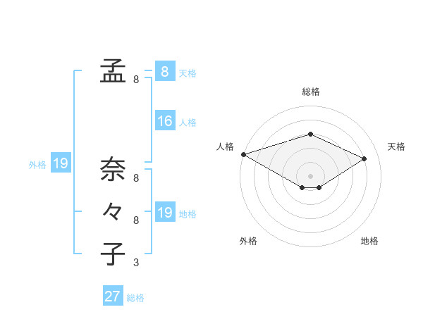 孟 奈々子さんの外格は19画の1点!