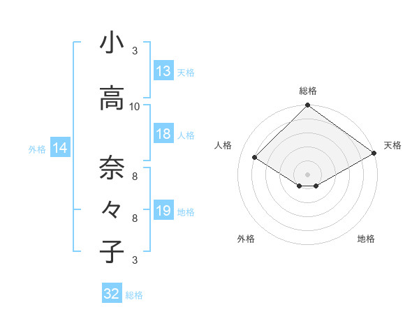 小高 奈々子さんを姓名の画数から五運を鑑定