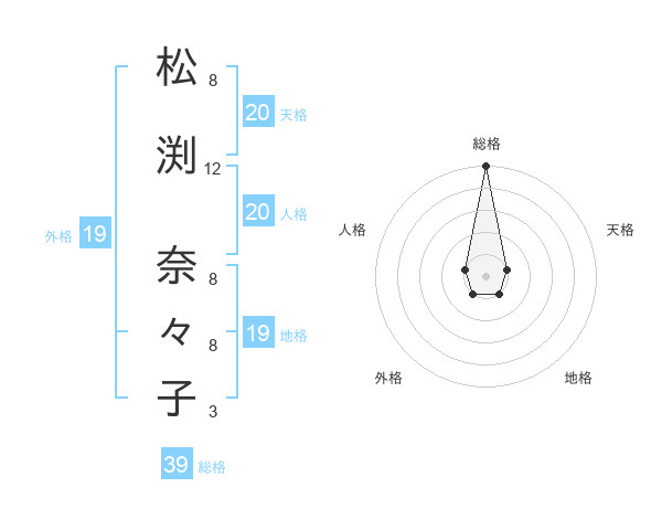 松渕 奈々子さんを姓名の画数から五運を鑑定