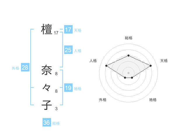 檀 奈々子さんを姓名の画数から五運を鑑定