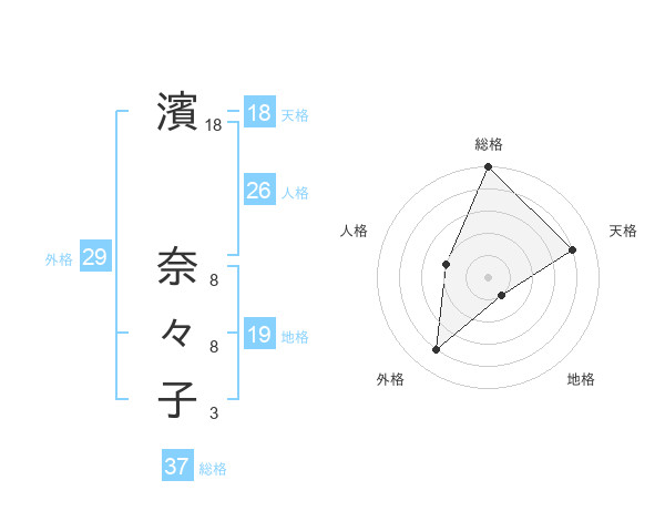 濱 奈々子さんの天格は18画の4点!