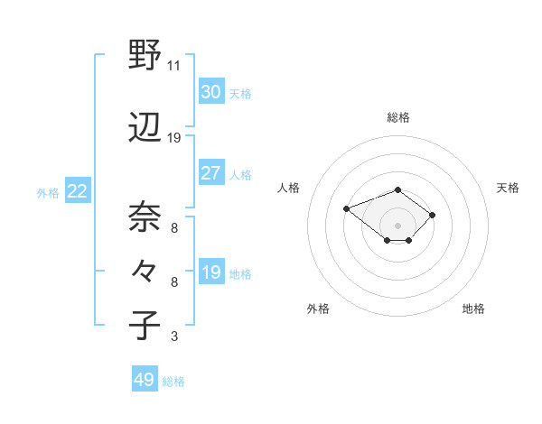 野辺 奈々子さんを姓名の画数から五運を鑑定