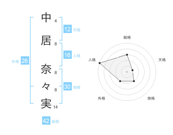中居 奈々実さんを姓名の画数から五運を鑑定
