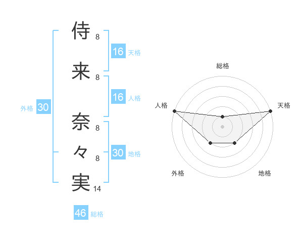 侍来 奈々実さんの天格は16画の5点!