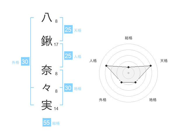 八鍬 奈々実さんの総格は55画の1点!