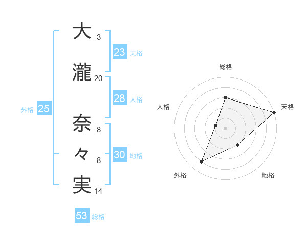 大瀧 奈々実さんの天格は23画の5点!