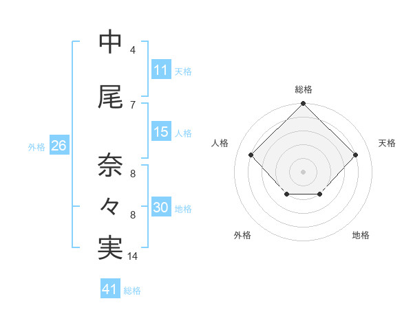 中尾 奈々実さんを姓名の画数から五運を鑑定