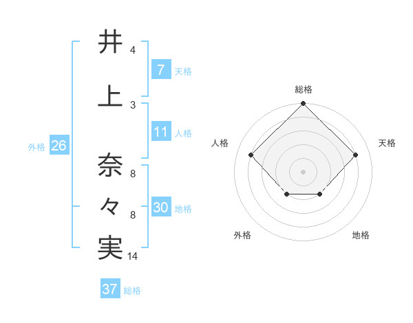 井上 奈々実さんを姓名の画数から五運を鑑定