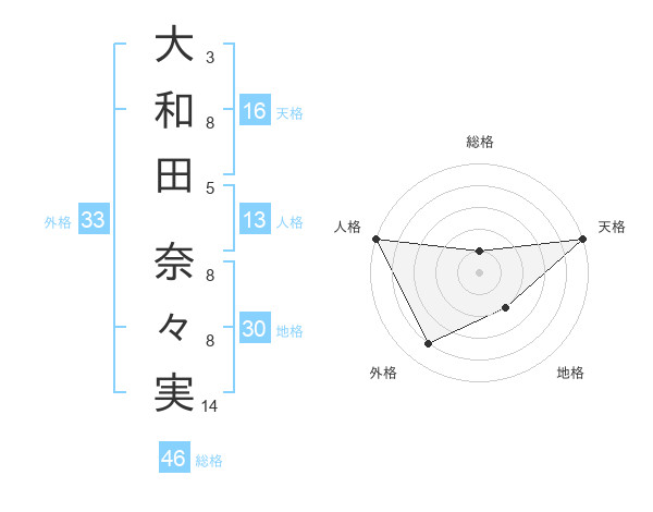 大和田 奈々実さんを姓名の画数から五運を鑑定
