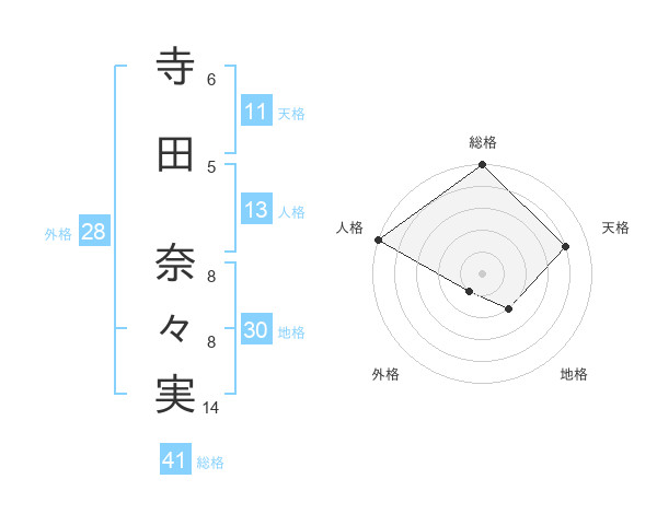 寺田 奈々実さんを姓名の画数から五運を鑑定