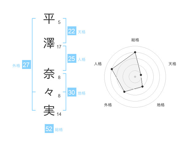 平澤 奈々実さんの総格は52画の4点!