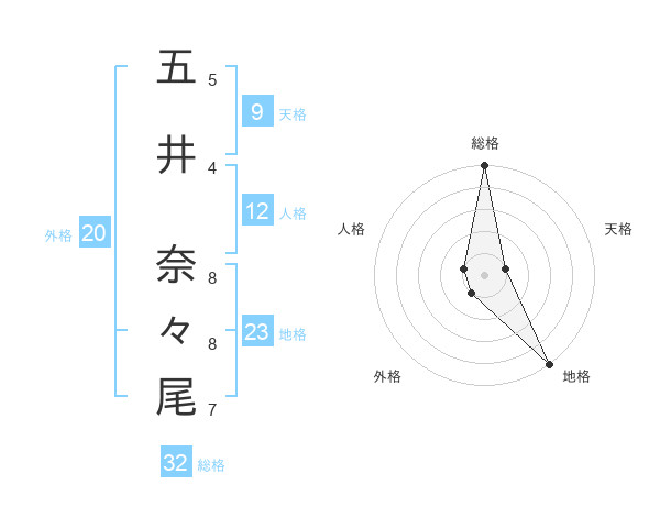 五井 奈々尾さんを姓名の画数から五運を鑑定