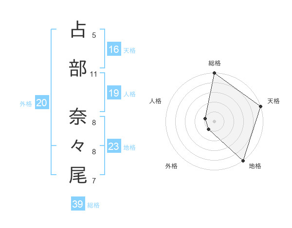 占部 奈々尾さんの天格は16画の5点!