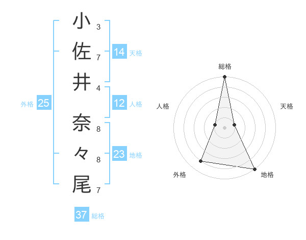 小佐井 奈々尾さんを姓名の画数から五運を鑑定