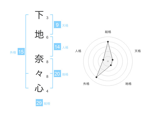 下地 奈々心さんを姓名の画数から五運を鑑定