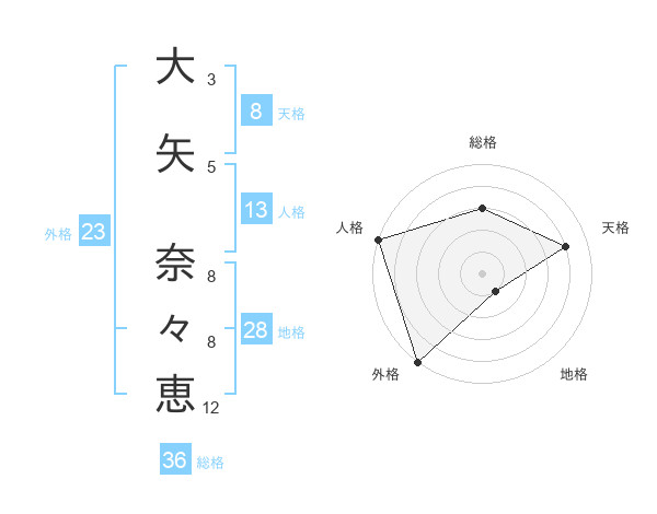 大矢 奈々恵さんを姓名の画数から五運を鑑定