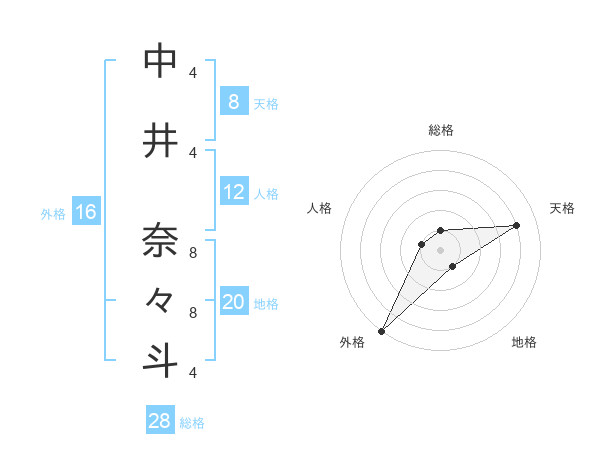 中井 奈々斗さんを姓名の画数から五運を鑑定