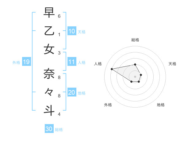 早乙女 奈々斗さんを姓名の画数から五運を鑑定