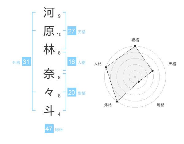 河原林 奈々斗さんを姓名の画数から五運を鑑定