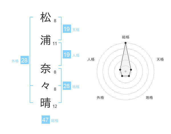 松浦 奈々晴さんを姓名の画数から五運を鑑定