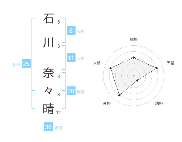 石川 奈々晴さんを姓名の画数から五運を鑑定