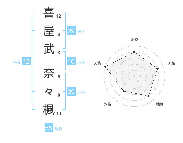 喜屋武 奈々楓さんを姓名の画数から五運を鑑定
