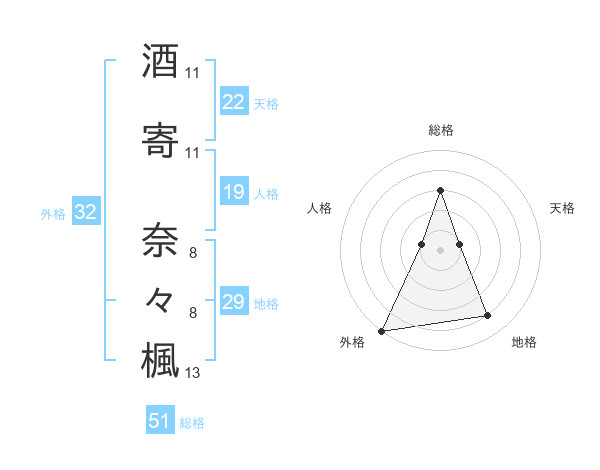 酒寄 奈々楓さんを姓名の画数から五運を鑑定