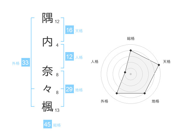 隅内 奈々楓さんを姓名の画数から五運を鑑定