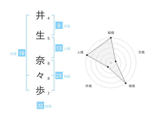 井生 奈々歩さんの総格は32画の5点!