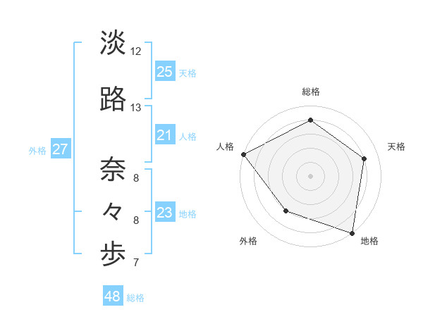 淡路 奈々歩さんを姓名の画数から五運を鑑定
