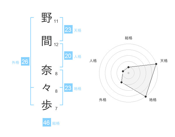 野間 奈々歩さんを姓名の画数から五運を鑑定