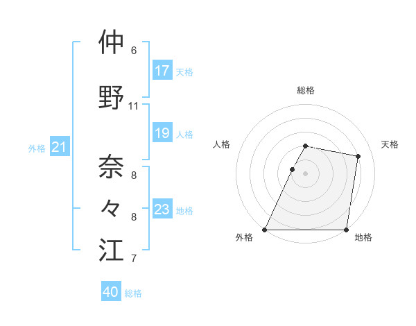 仲野 奈々江さんを姓名の画数から五運を鑑定