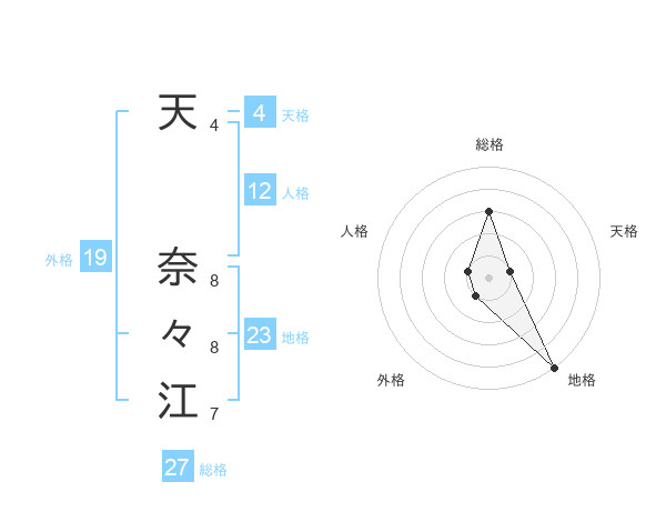 天 奈々江さんの総格は27画の3点!
