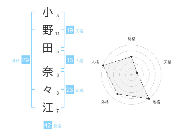 小野田 奈々江さんの天格は19画の1点!