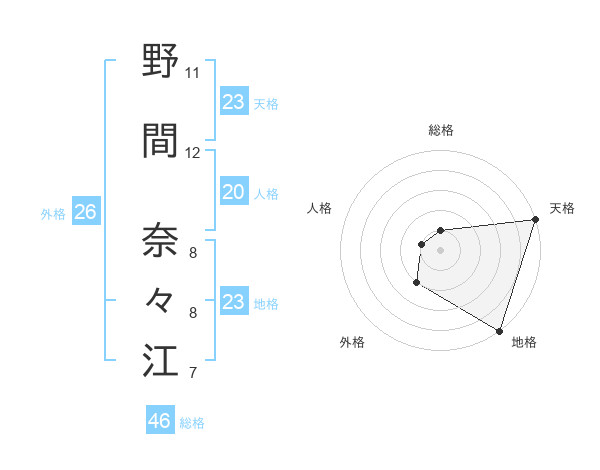 野間 奈々江さんを姓名の画数から五運を鑑定