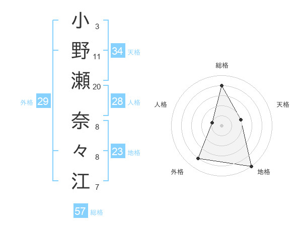 小野瀬 奈々江さんを姓名の画数から五運を鑑定