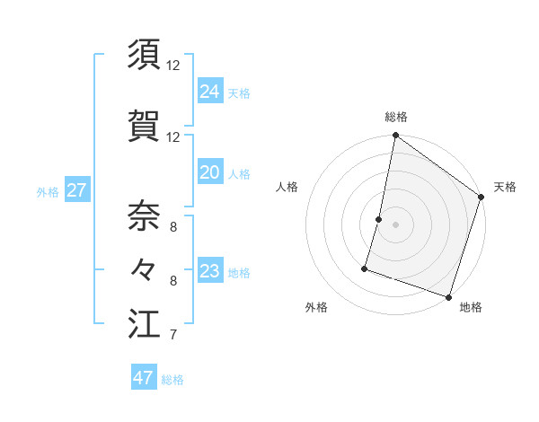 須賀 奈々江さんの総格は47画の5点