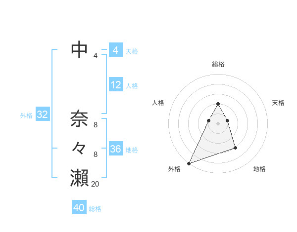 中 奈々瀨さんを姓名の画数から五運を鑑定