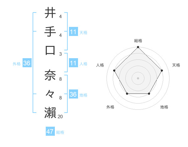 井手口 奈々瀨さんを姓名の画数から五運を鑑定