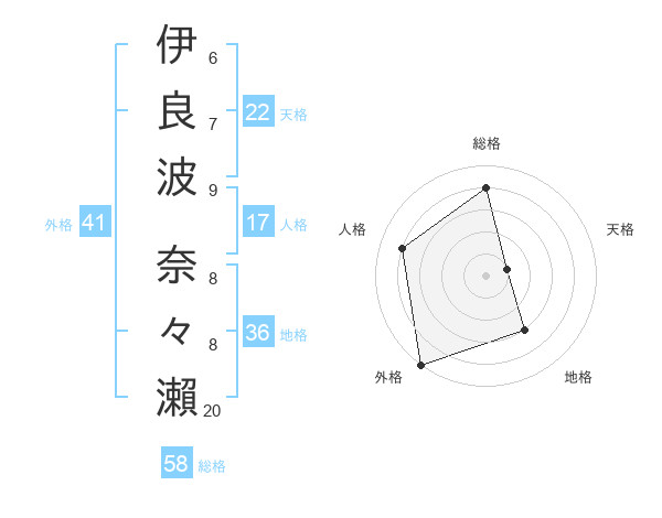 伊良波 奈々瀨さんの総格は58画の4点!