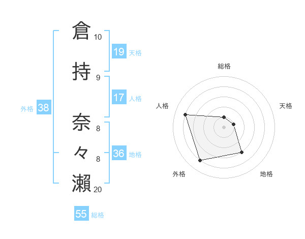 倉持 奈々瀨さんを姓名の画数から五運を鑑定